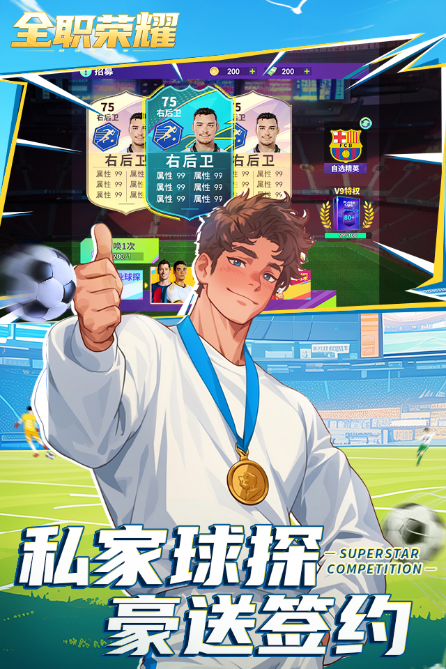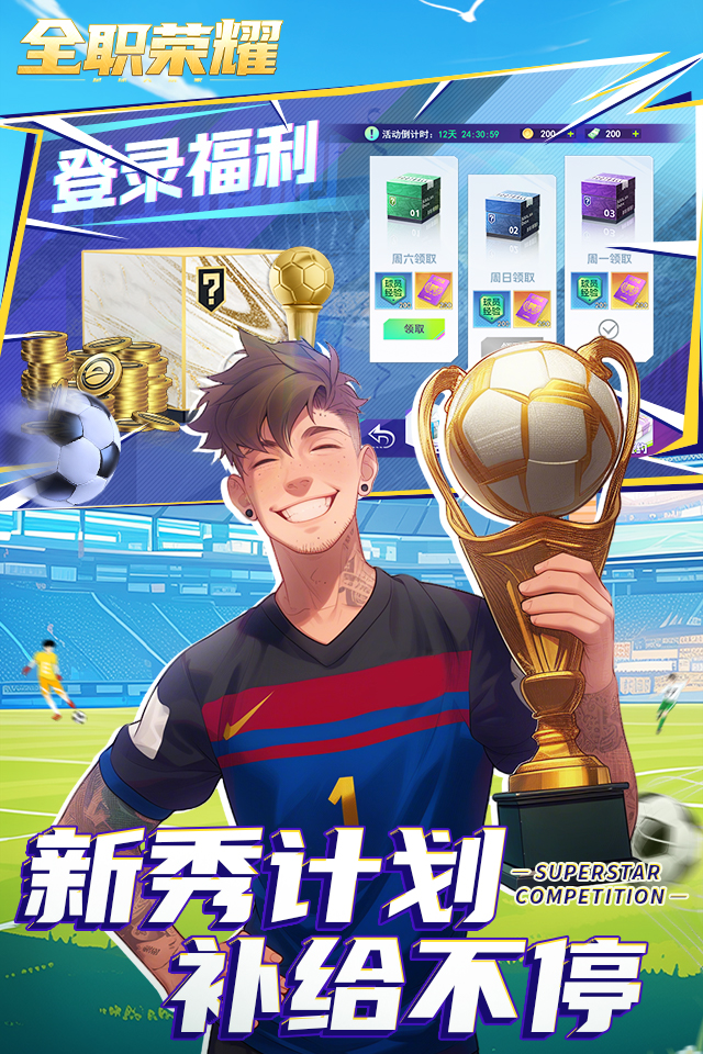 《全职荣耀》是一款模拟经营策略类足球游戏,上线即免费领百抽,超强开服狂欢,巨星养成壕领各种珍稀资源!游戏内球员培养、教练体系、七日登录领未来之星等各种精彩玩法,真实还原绿茵赛场。诸多球迷福利活动助你达成足球巨星梦,别犹豫!快来打造属于你的足球荣耀俱乐部,一起争霸绿茵之巅!
